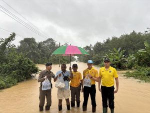 ได้เข้าช่วยเหลือมอบอาหารและน้ำดื่มให้แก่ประชาชนที่ได้รับความเดือดร้อนจากอุทกภัย ม.3ต.ท่าม่วง อ.เทพา จว.สงขลา(จุดที่2)