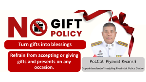 2.1ประกาศ No Gift Policy) บนบอร์ดประชาสัมพันธ์ของสถานีตำรวจภูธรห้วยปลิง